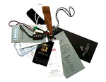 - Этикетки. Они бывают разных видов, например, картонными, самоклеющимися, тканевыми и т. д.